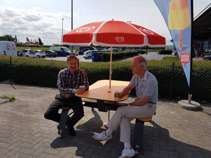 Nick's car overheated in Brussels and with all the messing about I got left at the side of the road but Cris came to the rescue.