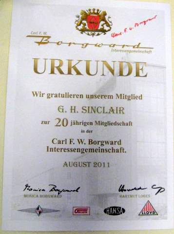 20 year Borgward membership certificate above is Gavin watson and George Sinclair.